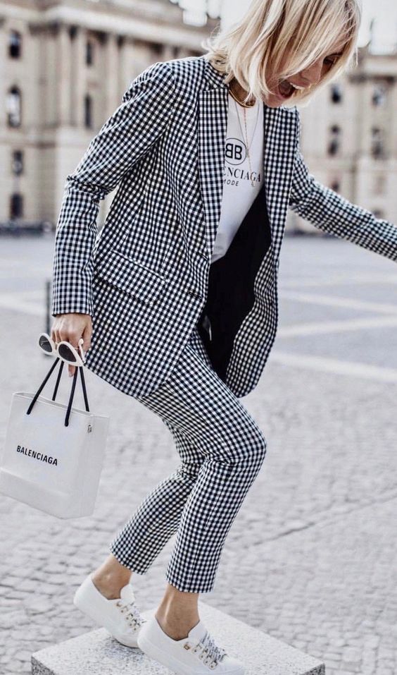 A pesar del home office, el traje sastre se sigue trayendo como tendencia esta temporada, y sin restricción de edad se acomoda al contexto al combinarse con prendas cómodas como zapatillas o remeras. Inclusive, en muchos modelos de pantalón ya se agregan botamangas de puño o fruncidas (similar a las de algunos pijamas) que dan más comodidad y soltura de movimientos, ya sea en actividades dentro de casa o fuera.